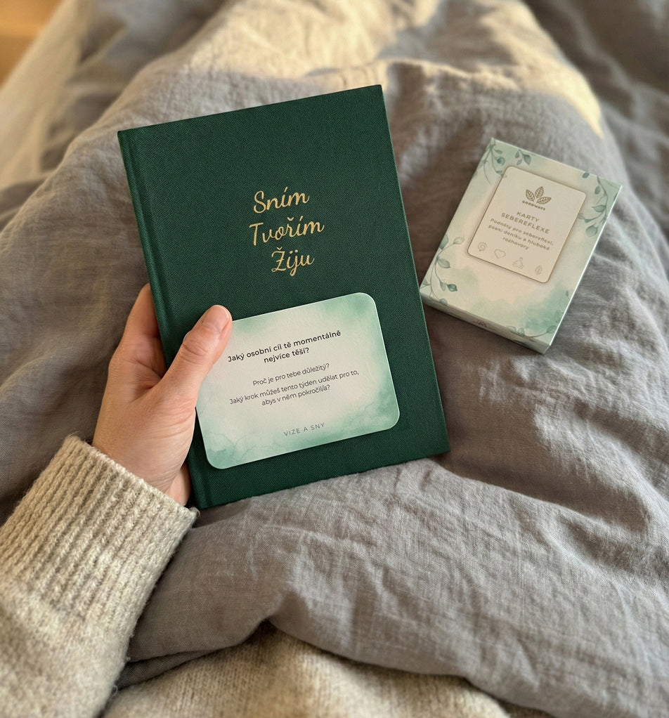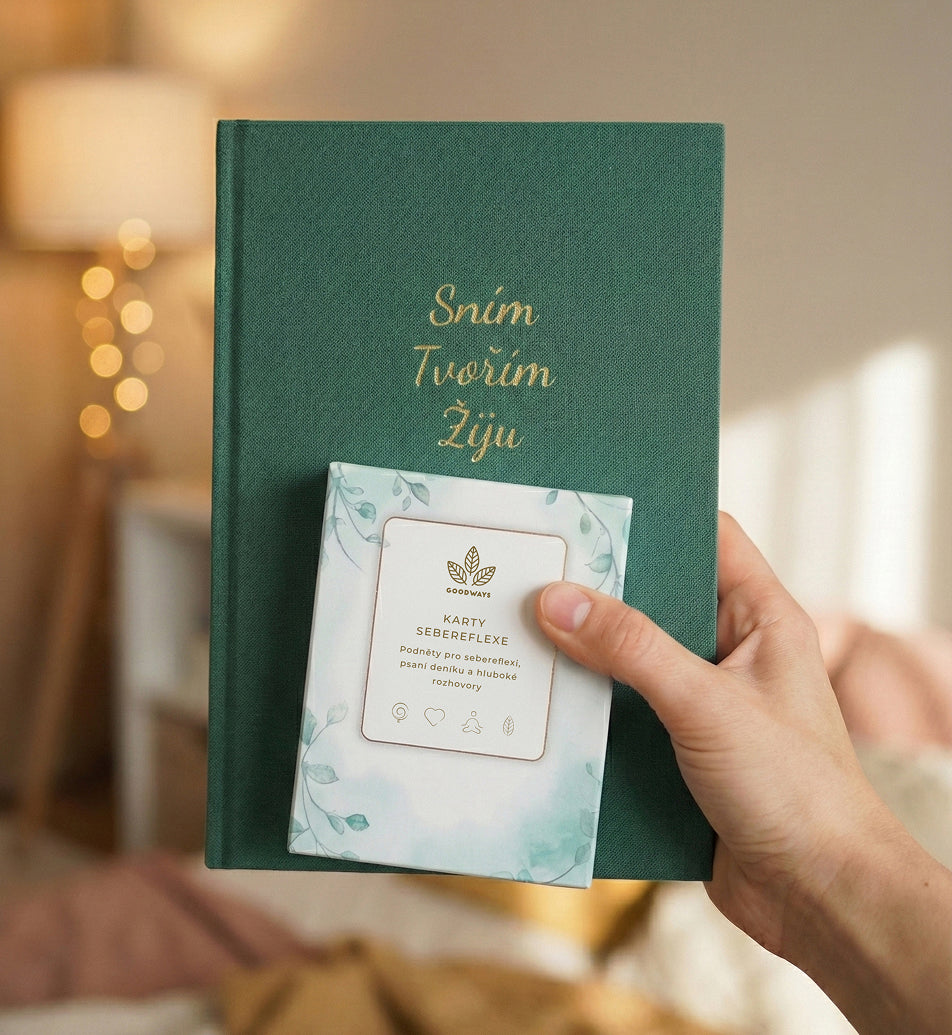 Představ si chvíli ticha jen pro sebe. Připravíš si svůj oblíbený čaj a místo mobilu sáhneš po jedné, hluboké otázce. Otevřeš svůj osobní zápisník... a začneš psát.