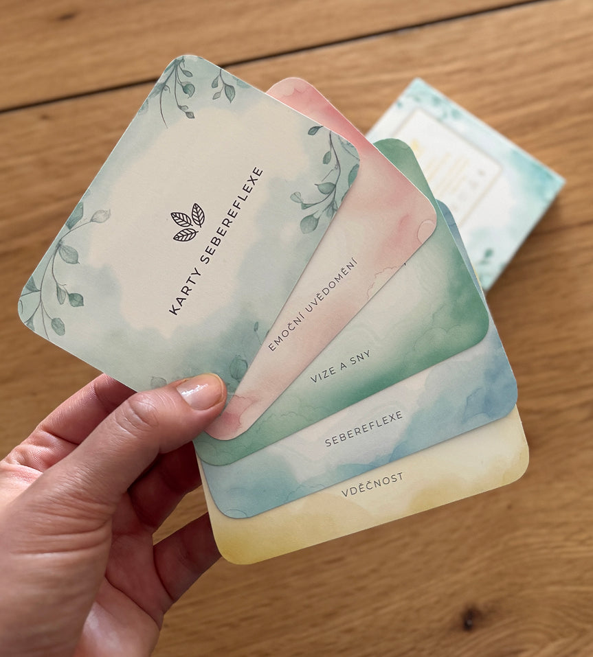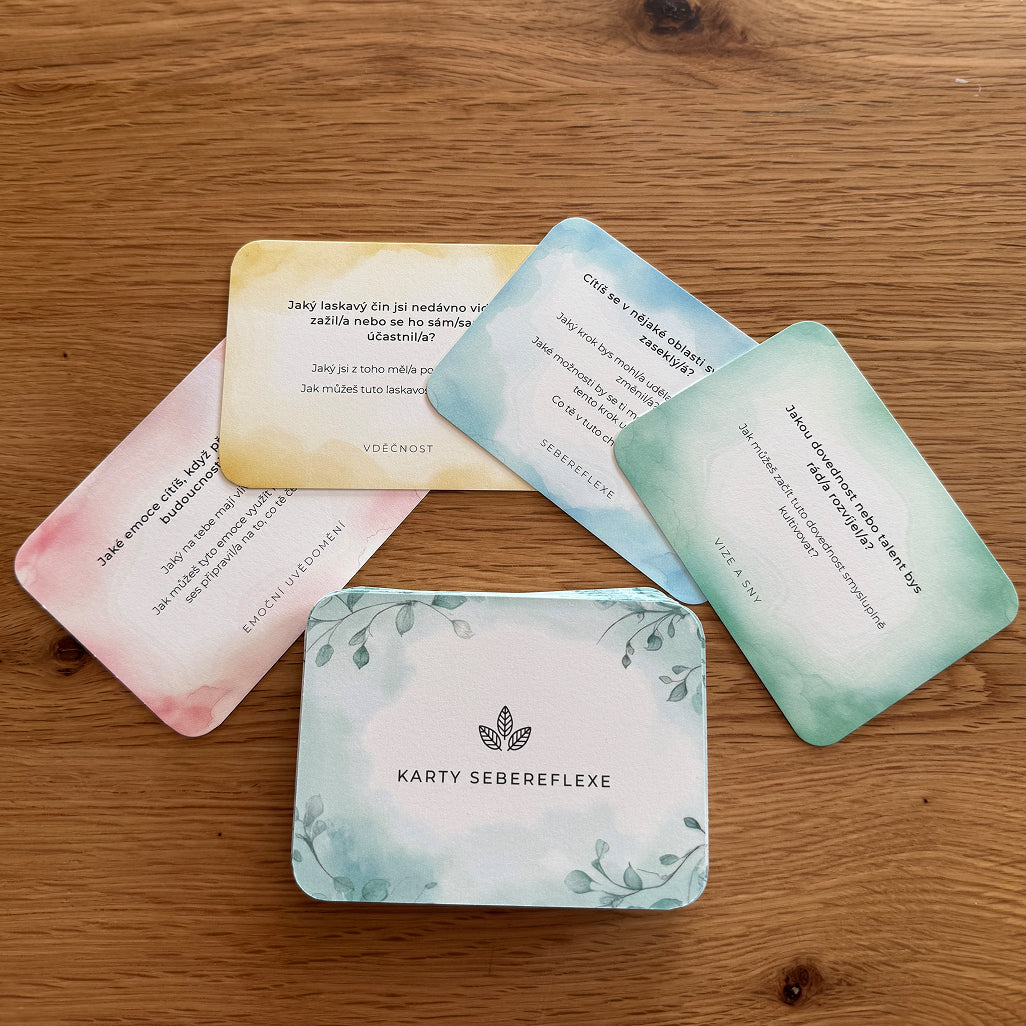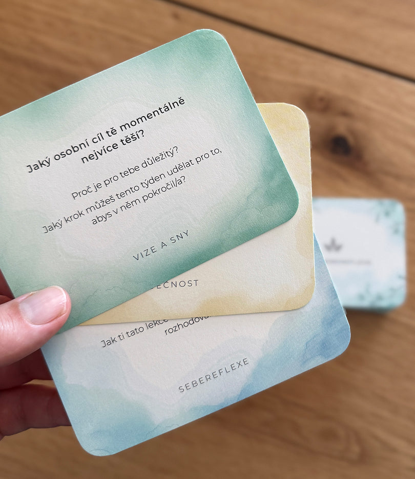 Přesně pro takové chvíle jsme tuto sadu navrhli. Spojili jsme naše Karty sebereflexe a Můj zápisník, aby byly tvými společníky na této cestě. Smyslem není, aby ti poskytly odpovědi, ale aby ti pomohly na ně přijít.