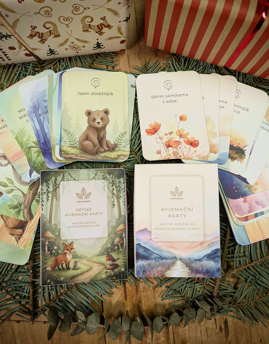 • Afirmační karty pro vás (40 karet): Praktický průvodce k sebelásce a zpomalení. Tyto karty obsahují poselství, která vám pomohou přenastavit myšlení, snížit míru stresu a chovat se k sobě s větším pochopením.